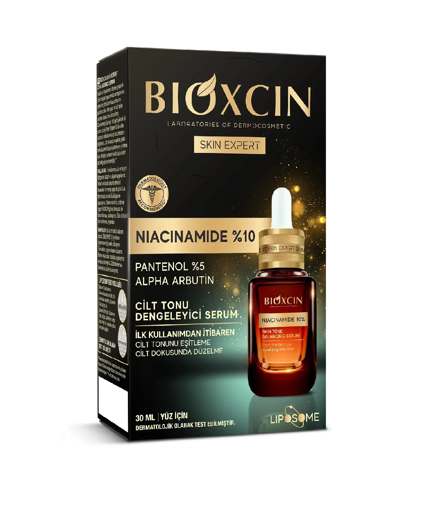 Bioxcin Skin Expert Cilt Tonu Dengeleyici Serum, %10 niacinamide, %5 pantenol ve alpha arbutin içerikleri ile cilt tonunu eşitlemeye ve cilt dokusunu iyileştirmeye yardımcı olur. İlk kullanımdan itibaren ciltte fark edilebilir bir düzelme sağlar ve pürüzsüz bir görünüm kazandırır. Niacinamide serum, cilt bariyerini güçlendirirken, hiperpigmentasyonu azaltarak lekelerin görünümünü hafifletir.