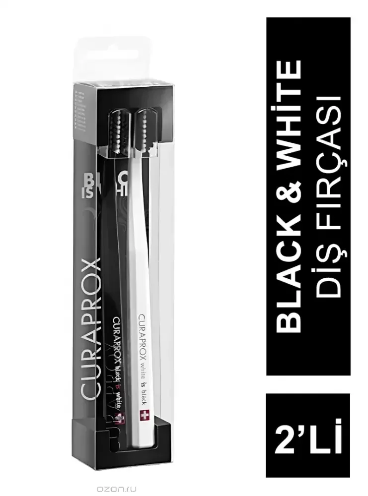 5460 ultra-yumuşak Curen® kıldan oluşan siyah-beyaz set; diş etlerini tahriş etmeden plak uzaklaştırır, minimalistik tasarım sunar.
