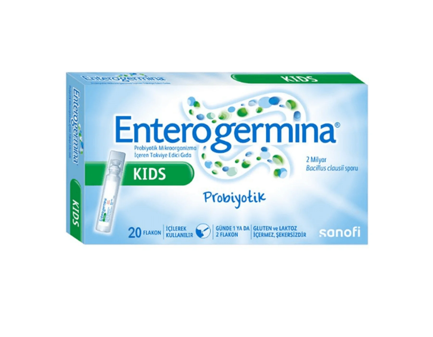 • Enterogermina Kids, her bir flakon içerisinde 2 Milyar Bacillus Clausii sporları ve saf su içerir.