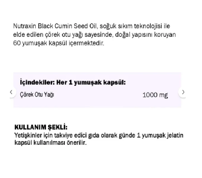 Nutraxin Çörek Otu Yağı 1000 mg 60 Kapsül
