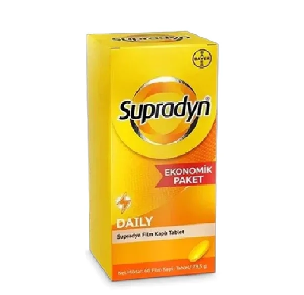 Bayer Türk Kimya San. Ltd. Şti. (Supradyn®). Ürün, kalite ve hijyen standartlarına uygun üretim süreçleriyle sunulan multivitamin-mineral + Koenzim Q10 formülüdür.