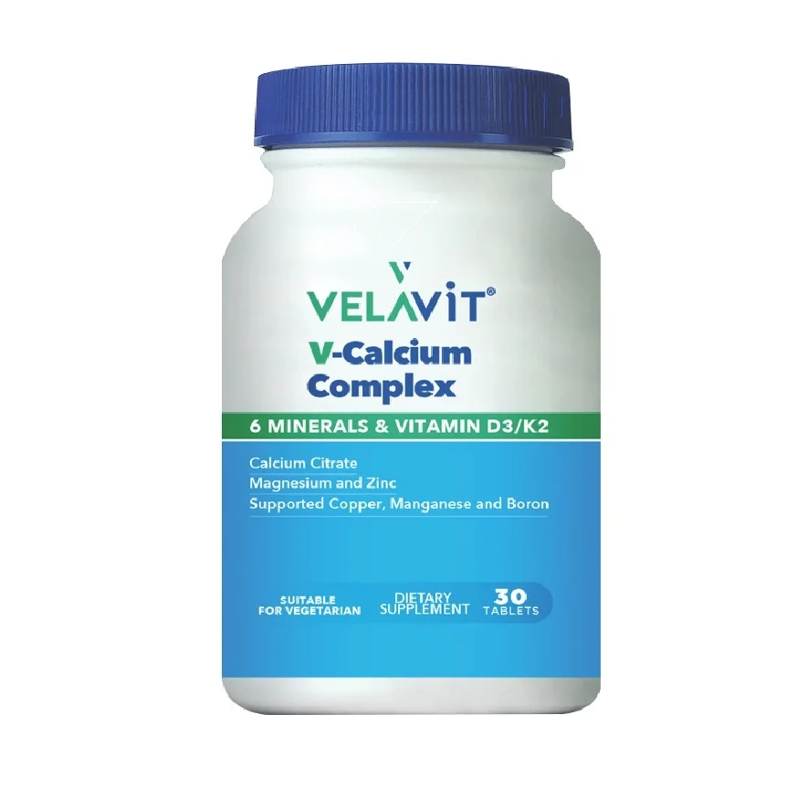 Kalsiyum + Magnezyum + Çinko + Mn + Cu + Boron + K2 & D3 vitaminleri içeren vegan kapsül. Velavit V‑Calcium Complex, kalsiyumun vücuttaki biyoyararlanımını artırmak için magnezyum, K2 ve D3 vitaminleriyle zenginleştirilmiş, gluten‑laktoz içermeyen vegan bir formuldür. Günlük tek kapsül, kemik ve kas sisteminiz için pratik ve bilimsel temelli bir destek sunar.