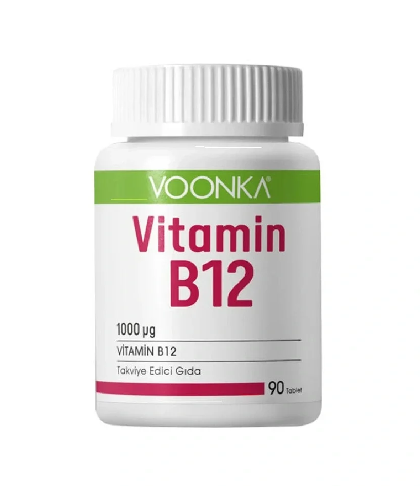 Voonka Vitamin B12 90 Tablet, sinir sistemi fonksiyonlarının normal işleyişine, kırmızı kan hücrelerinin oluşumuna ve enerji metabolizmasının desteklenmesine katkı sağlayan güçlü bir B12 vitamini takviyesidir. Düzenli kullanım, yorgunluk ve bitkinlik hissinin azalmasına yardımcı olurken aynı zamanda zihinsel performansı da destekler.